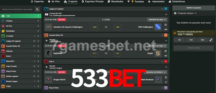 A aposta 533Bet oferece aos jogadores a experiência mais conveniente de apostas em eSports!